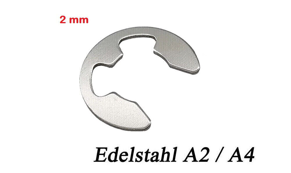 2 mm E-CLIP Außen Sicherungsring Sprengring für Welle DIN 6799 Edelstahl 2mm M2