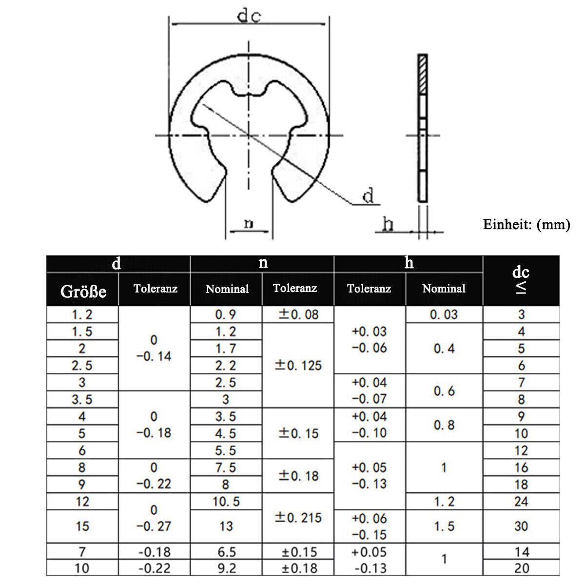 6 mm E-CLIP Außen Sicherungsring Sprengring für Welle DIN 6799 Edelstahl 6mm M6