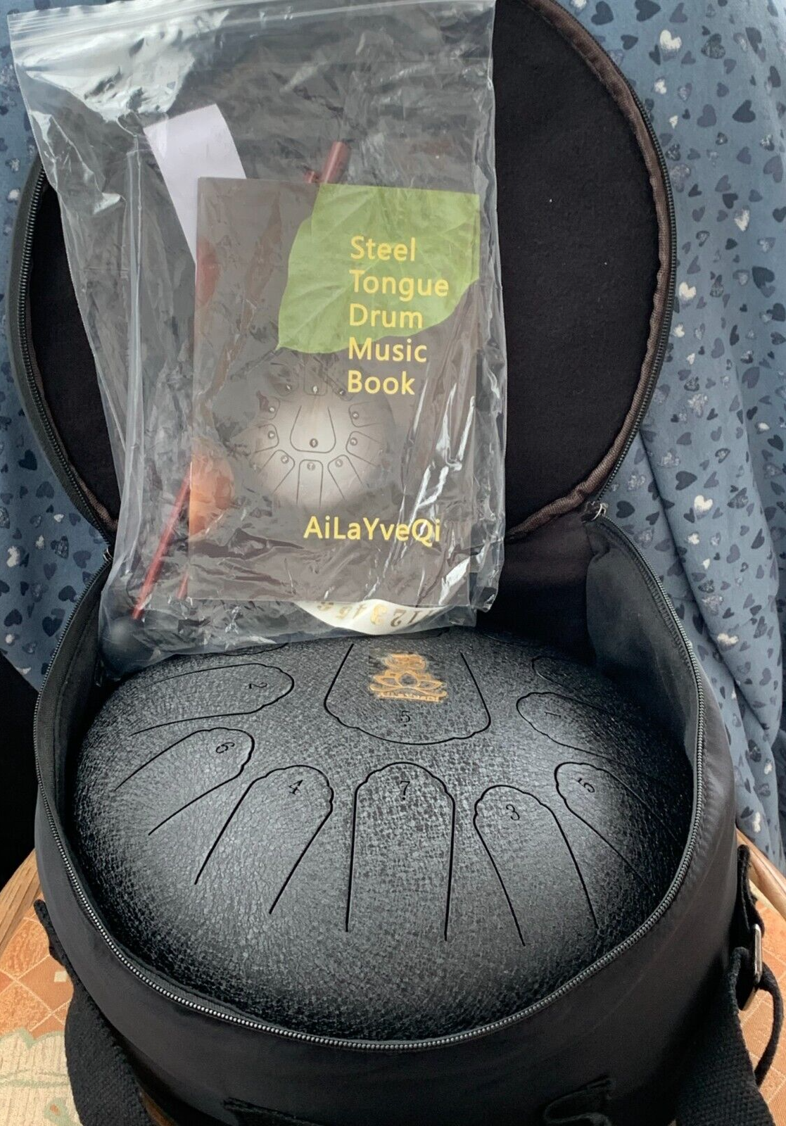 AiLaYveQi Stahlzungentrommel, C-Key 13 Noten 12 Zoll Handtrommel, Schlaginstrument Handpan mit Trommelschlägeln/Tragetasche für Kinder oder Erwachsene Schwarz