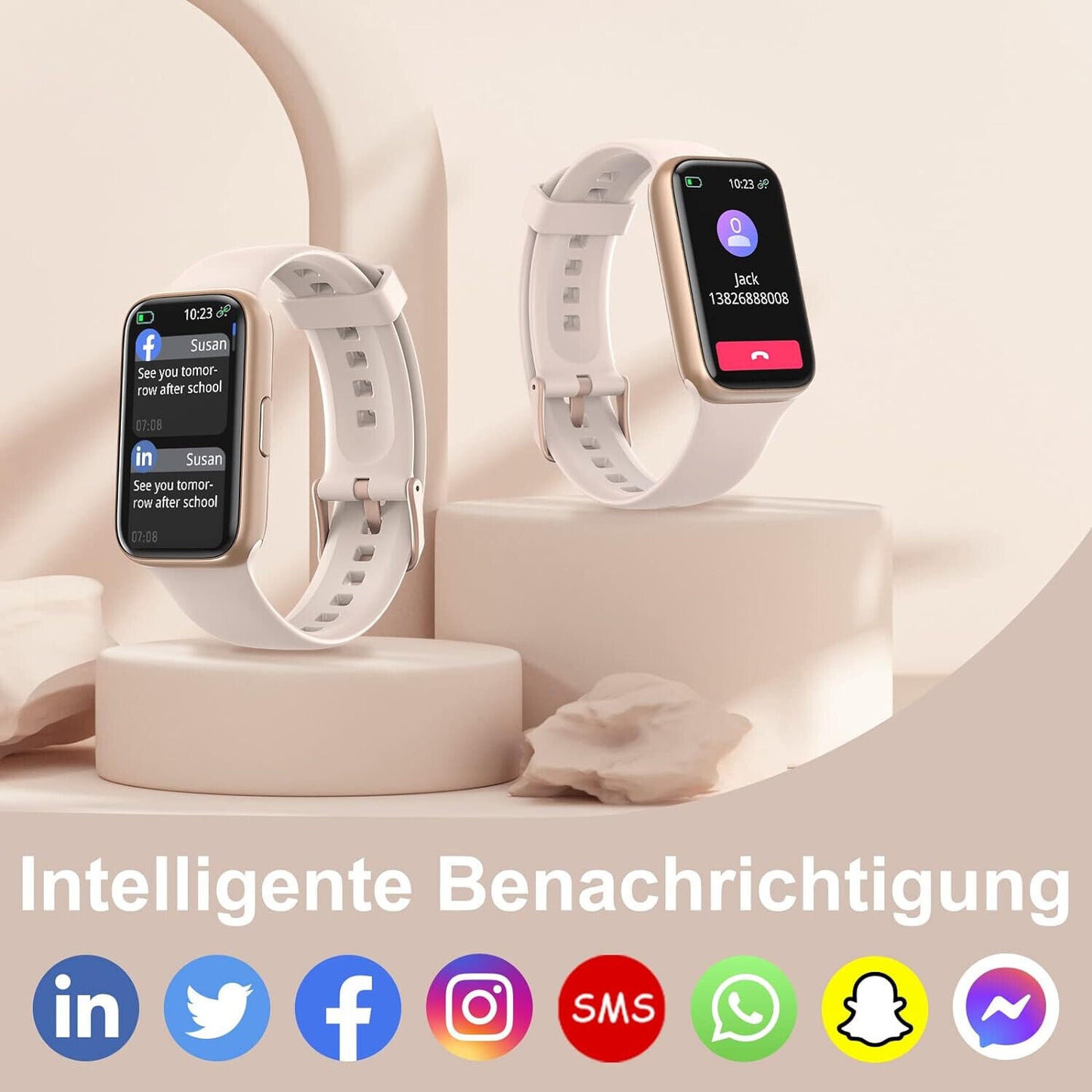 - Informationen & intelligente Erinnerungs: Sie können die Fitness armband für Damen Herren mit Ihrem Telefon verbinden, Sie können Benachrichtigungen über SMS, eingehende Anrufe und SNS (Facebook, Twitter, ins, Whatsapp usw..) auf dieser Fitnessuhr erhalten. Alle Benachrichtigungen werden auf Ihrem Handgelenk angezeigt und erinnern Sie durch Vibration. Es hat auch Wasser Erinnerung, sitzende Erinnerung, Wecker usw..