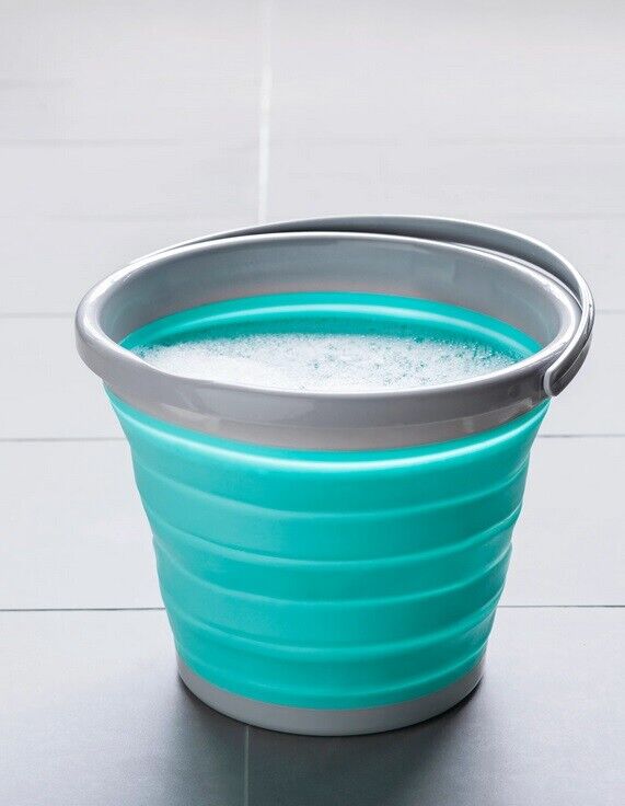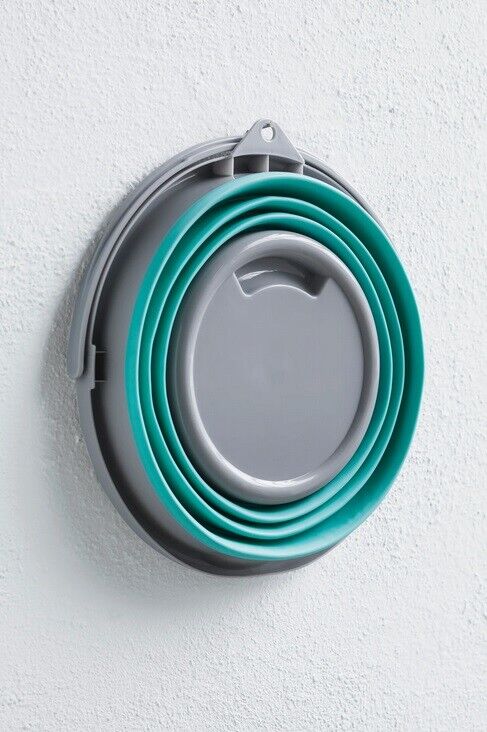 Faltbarer Wassereimer: • Füllmenge 10 Liter • steht sicher und stabil • mit Aufhängeöse und Tragegriff • Material: Kunststoff.