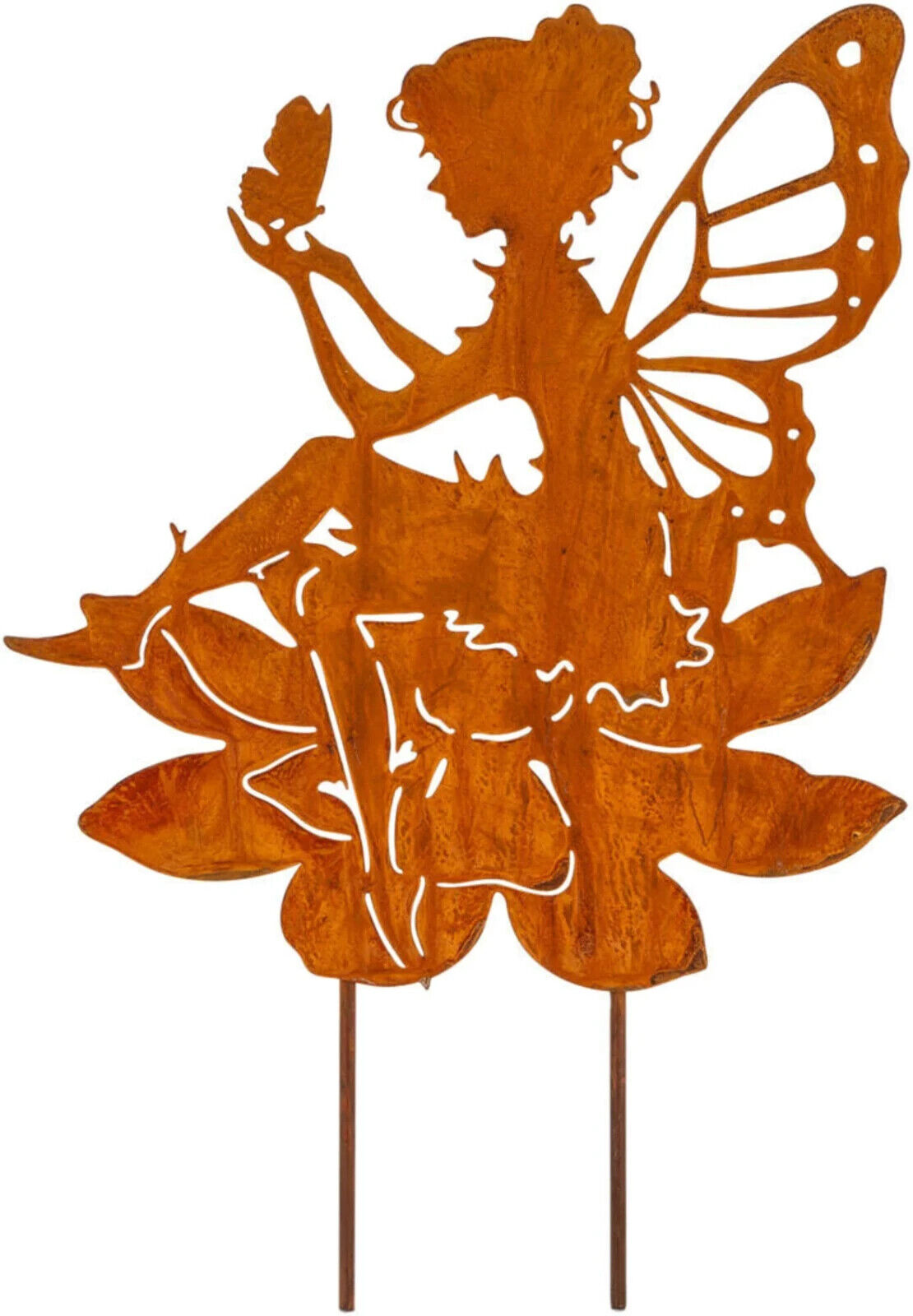 Eine charmante Dekoration für Wiese, Blumenbeet oder Vorgarten: einfach in den Boden stecken, fertig! Auch auf der Terrasse oder auf dem Balkon ist das hinreißende Feenmädchen ein willkommener Gast, z.B. in einem Pflanztrog oder im Balkonkasten. Das Metallmotiv ist wie ein nostalgischer Scherenschnitt gearbeitet und mit feinen Durchbrüchen versehen.