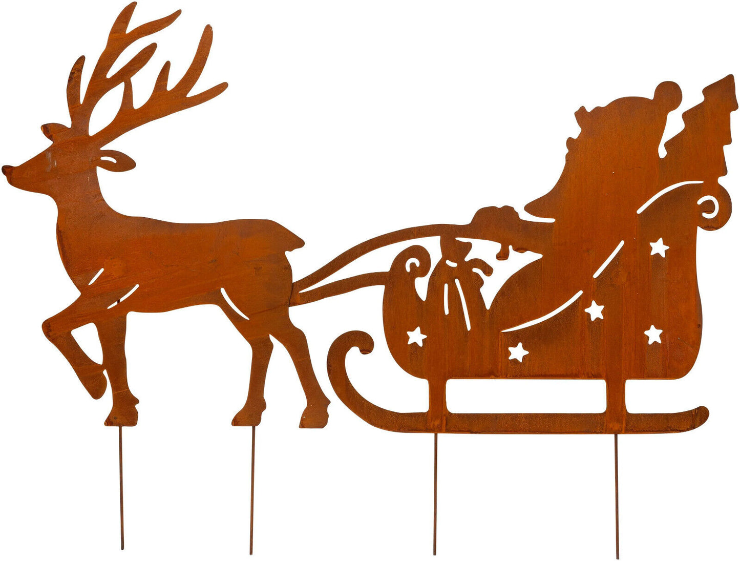 Gartenstecker "Weihnachtsmann mit Schlitten" aus Metall in Rostoptik Advent Deko
