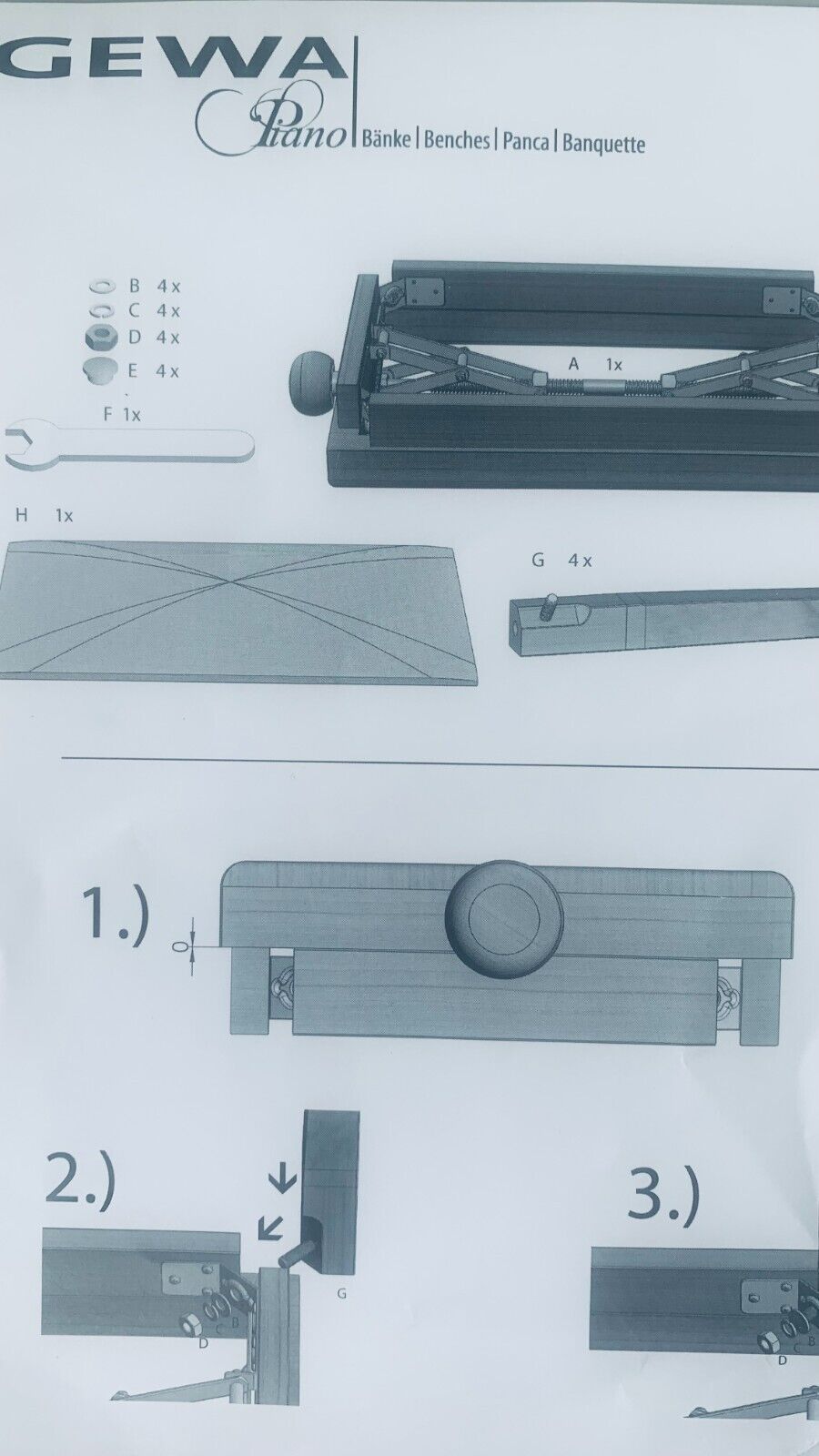 GEWA Pianobank Deluxe, Massivholz, höhenverstellbar schwarz Hochglanz
