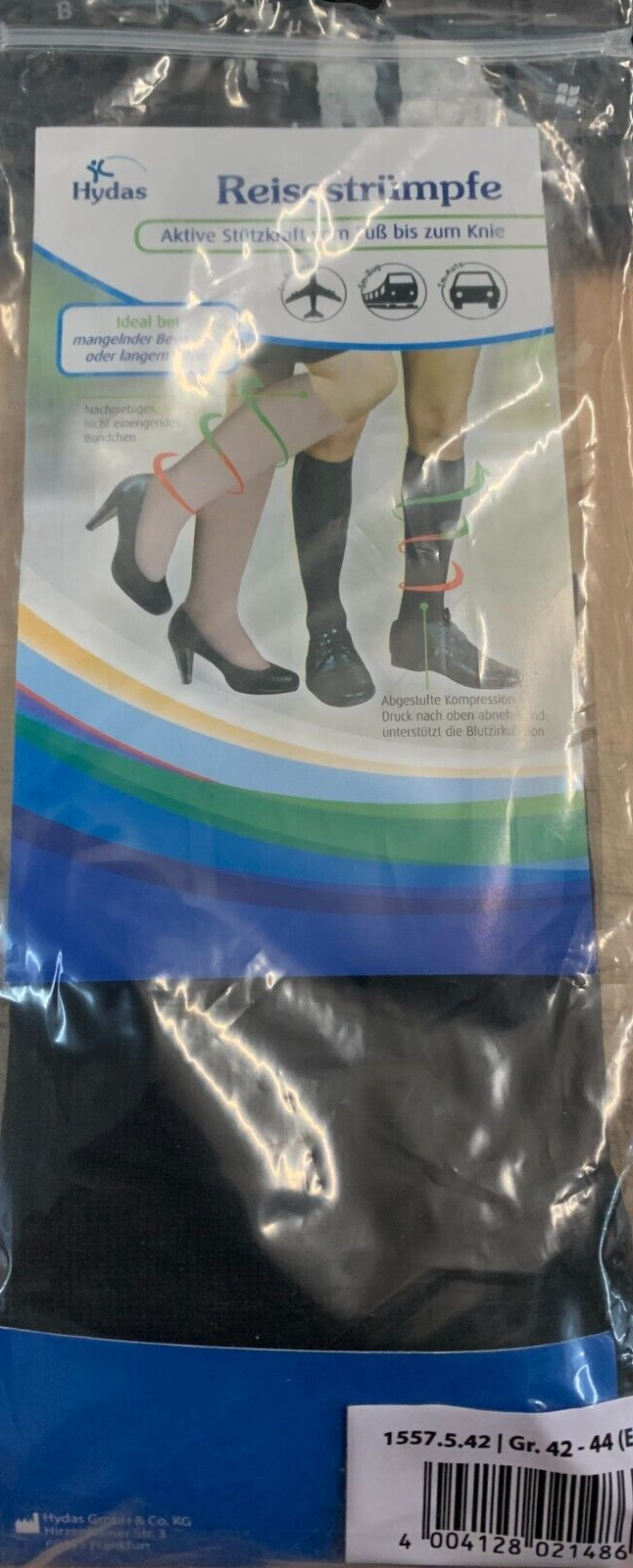 Hydas Reisestrümpfe mit Stützwirkung Größe 42/44 Kompressionsstrümpfe Schwarz