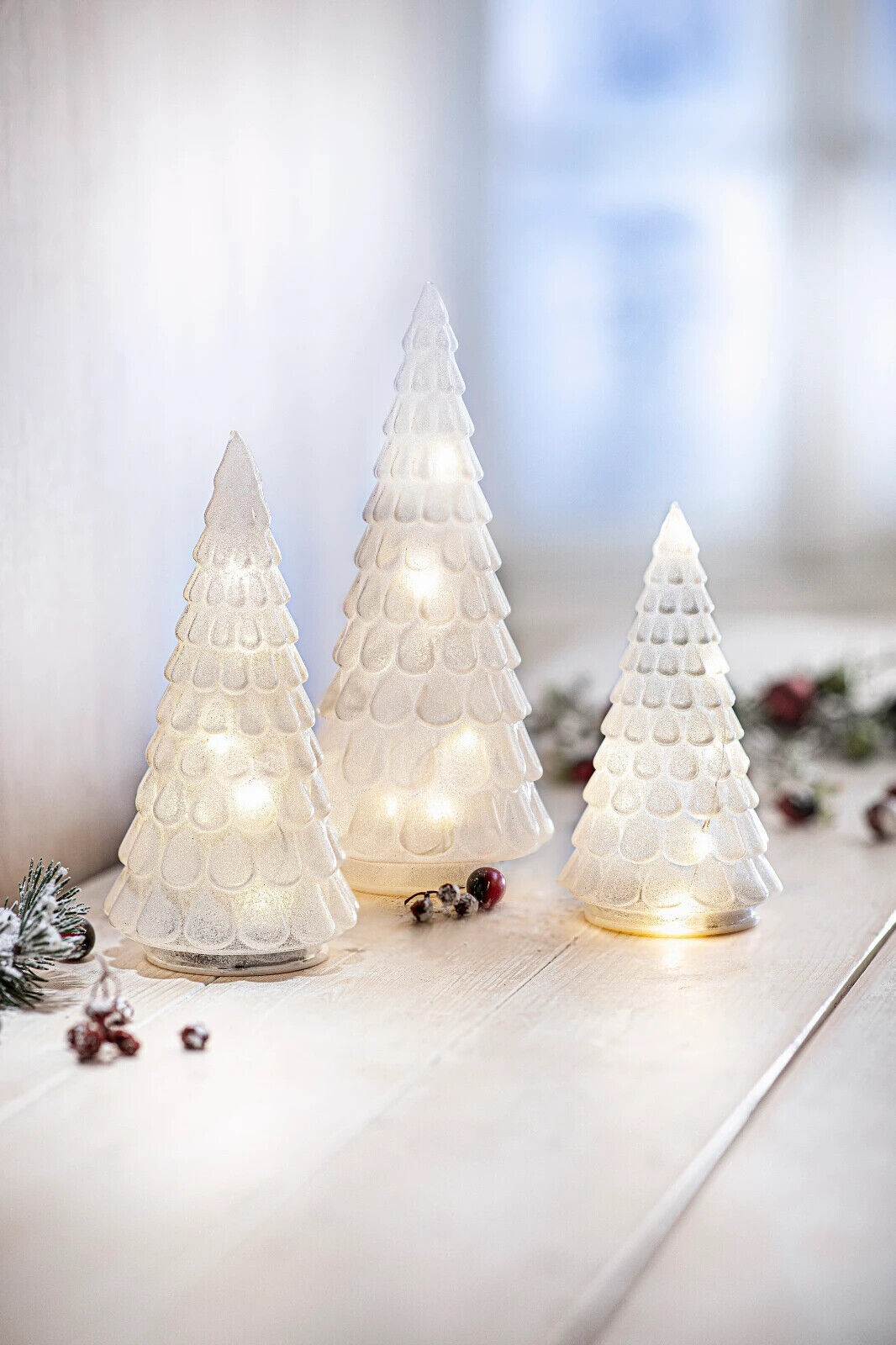 Glitzernd wie Schnee: LED-Tannen „White Christmas“ 3er-Set