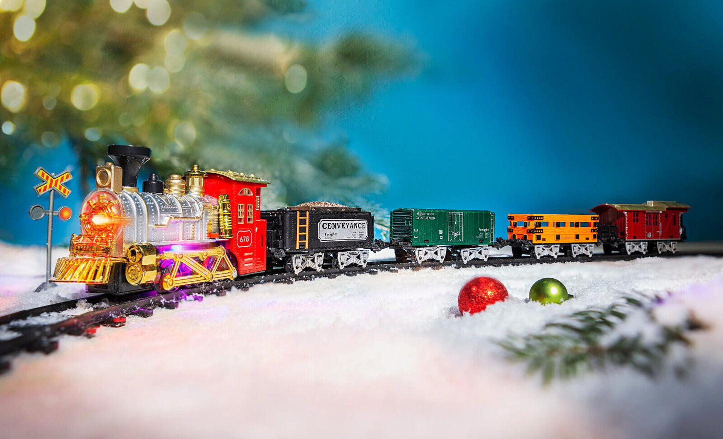 Verleihen Sie Ihrem Zuhause mit diesem bezaubernden LED-Weihnachtszug Wonderland eine festliche Atmosphäre. Das Set besteht aus einer 88 cm langen Lokomotive und 4 Waggons, die mit detailreichen Weihnachtsmotiven gestaltet sind. Mit insgesamt 14 Teilen und Zubehör ist dieses Deko-Set perfekt, um Ihre Weihnachtsdekoration zu vervollständigen und ein funkelndes Highlight zu setzen. Ideal für die festliche Jahreszeit und als Blickfang in Ihrem Zuhause oder Büro. Machen Sie Weihnachten mit diesem zauberhaften Zug zu etwas ganz Besonderem!