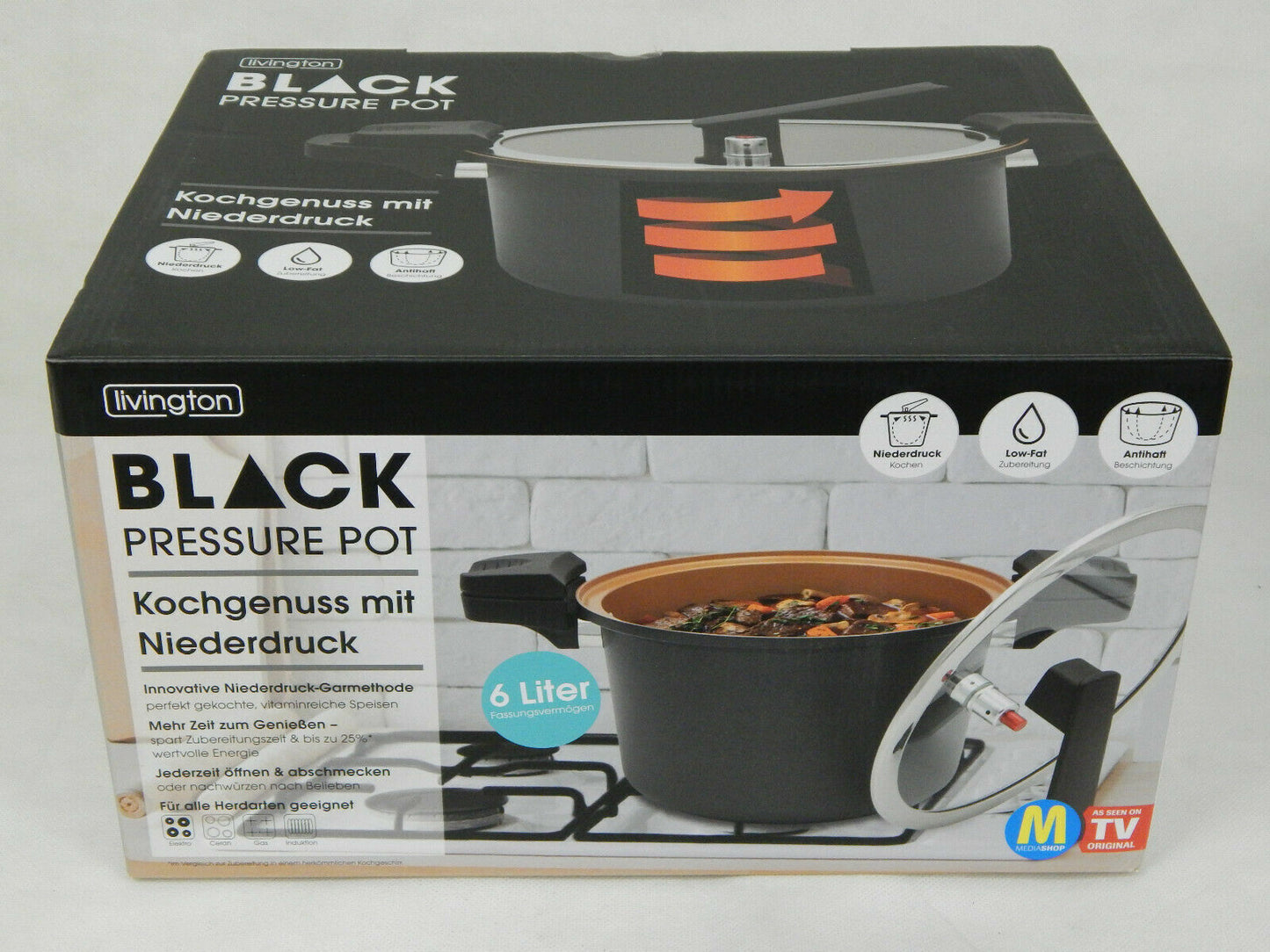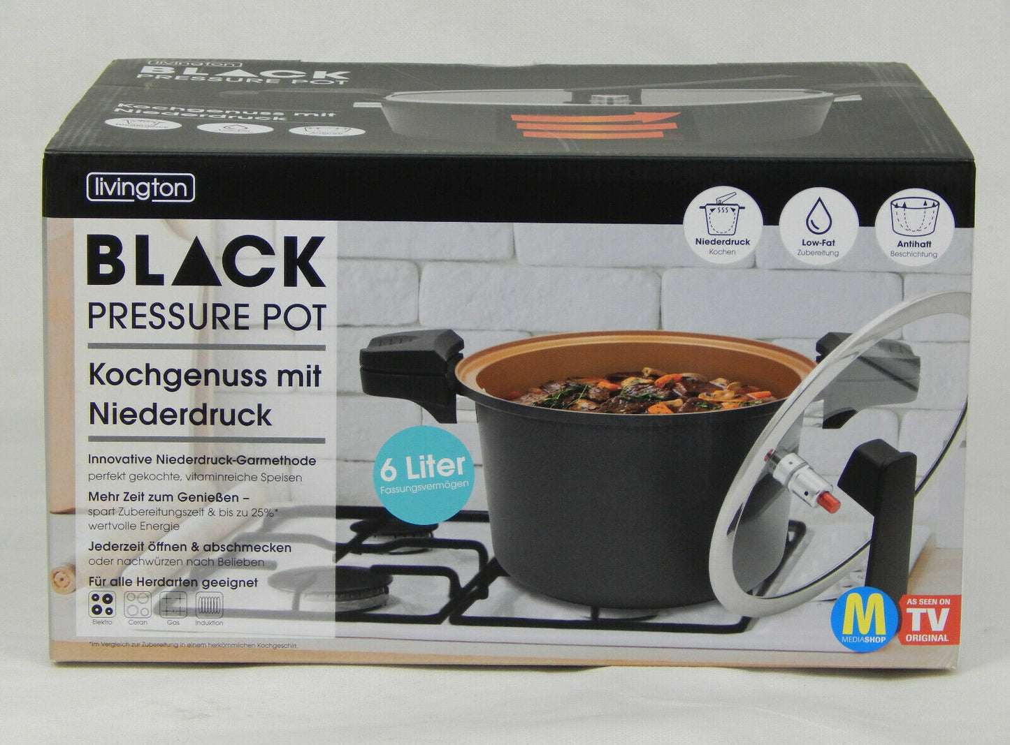 Livington Black Pressure Pot 6 L Dampfkochtopf Schnellkochtopf Kochen Topf