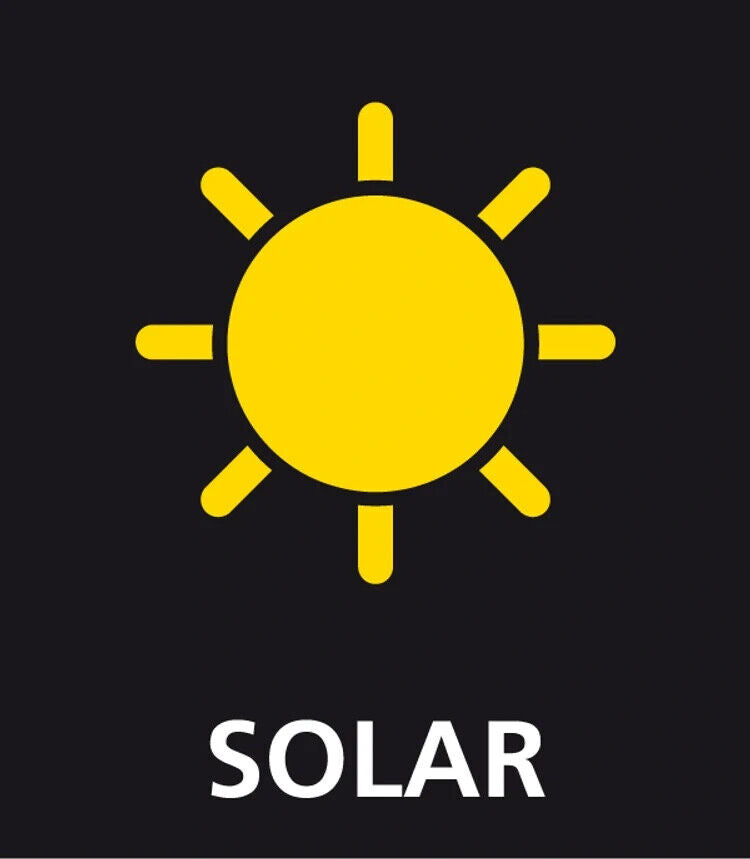 - Solar: Lädt tagsüber auf, leuchtet am Abend