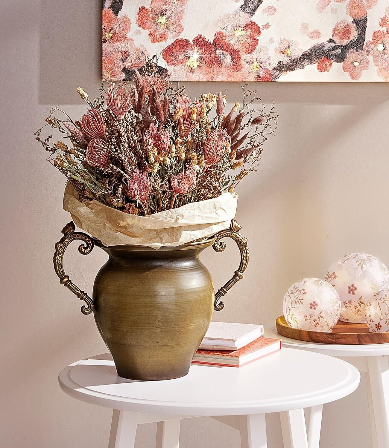Haltbarkeit: Trockenblumen bleiben über eine lange Zeit schön, ohne dass Sie sich darum kümmern müssen. Die dekorativen Trockenpflanzen sollten allerdings nicht mit Wasser in Berührung kommen; auch hohe Luftfeuchtigkeit, wie in Badezimmern, kann die Schönheit beeinträchtigen oder sie im schlimmsten Fall verderben lassen.