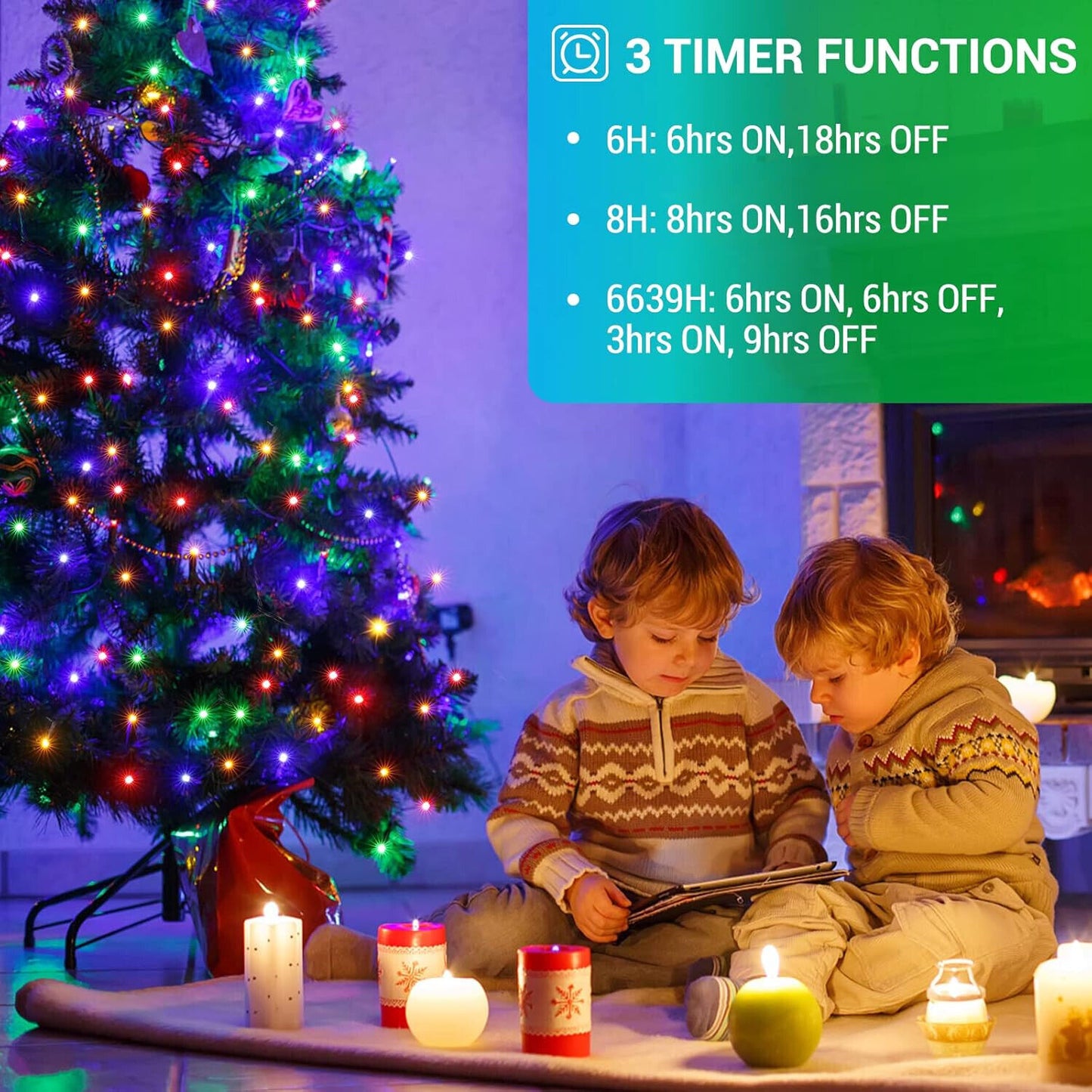 - Fernbedienung & Timer-Funktion: Diese farbwechselnden Lichterketten mit Stecker werden mit einer Fernbedienung geliefert, mit der das Licht drahtlos gesteuert werden kann. 3 verschiedene Timer-Optionen umfassen 6H (6H an, 18H aus), 8H (8H an, 16H aus), 6639H (6H an, 6H aus, 3H an, 9H aus). Und der eingebaute Speicherchip speichert Ihre letzte Moduseinstellung, sodass Sie sie nicht erneut zurücksetzen müssen.